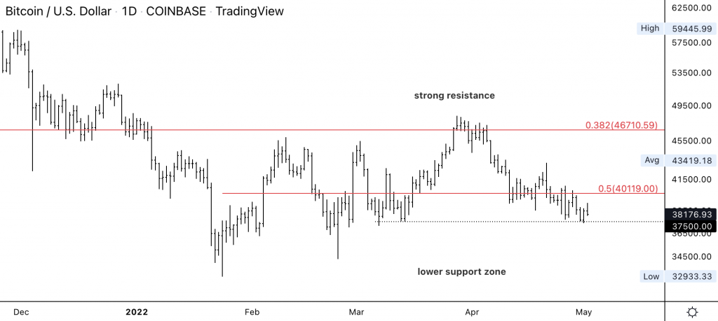 Bitcoin ( BTC ) đã ở trong một xu hướng giảm ngắn hạn kể từ cuối tháng 3, được xác nhận bởi một loạt các mức giá thấp hơn. Điều đó cho thấy áp lực bán dai dẳng, mặc dù hỗ trợ ở mức 37.500 đô la có thể duy trì phạm vi giá hiện tại.
